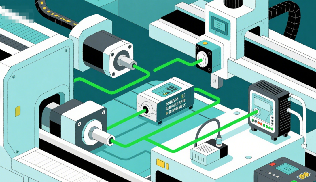 而在全閉環控制模式下,伺服電機接收上位控制器發出的速度可控脈沖指令并執行,同時機械裝置上的位置反饋裝置會直接將實際位置信息反饋給控制系統。控制系統對比指令位置和實際位置后判斷偏差,再向伺服電機發出修正指令,從而實現更精準的控制。這種將伺服電機、運動控制器、位置傳感器有機結合的控制模式,能達到極高的精度,常用于對精度要求極高的高端制造設備中。